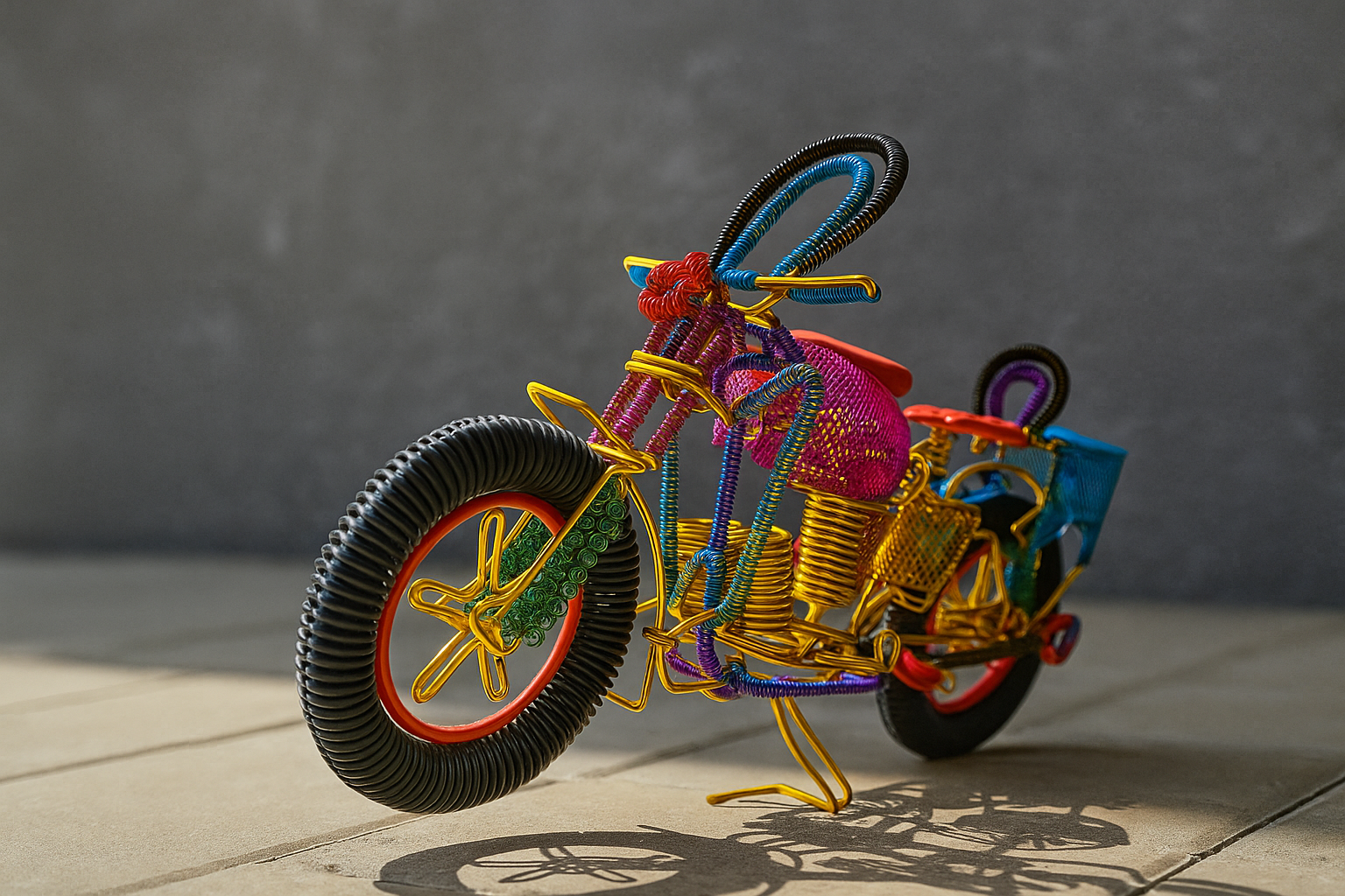 Mohd Majeed’s colorful wire motorcycle brings this vibe to life — a playful creation where craft meets imagination, tradition meets whimsy, and every twist of wire sparks a sense of wonder. Inspired by the iconic Royal Enfield Bullet, it’s more than a bike; it’s a celebration of heritage, personality, and unapologetic joy on wheels.